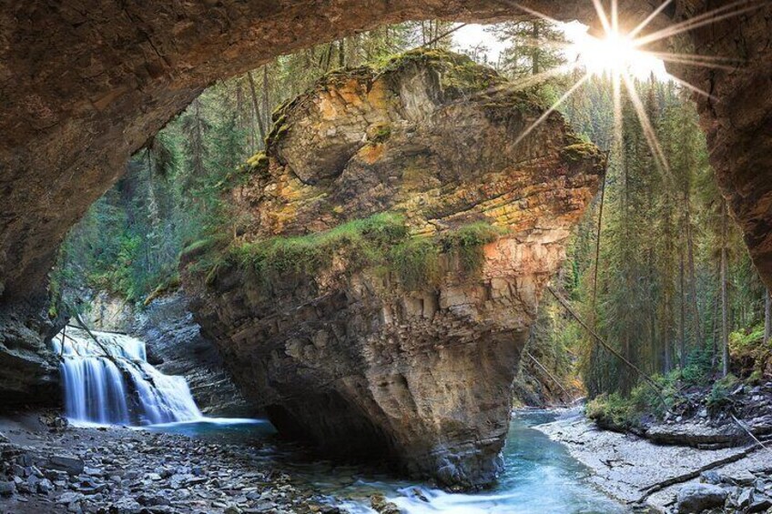 Johnston Canyon, one of the park’s most popular and rewarding hikes. Here, Johnston Creek has carved a dramatic gorge through limestone rock over thousands of years. We will have around 60 minutes for a mini self-guided tour of the canyon. You will walk along secure steel catwalks built right into the canyon walls, providing thrilling, up-close views of the rushing water below. Follow the well-maintained trail to the Lower Falls and Upper Falls, where powerful cascades tumble into the deep gorge. From November to April, access to Johnston Canyon can be challenging. During this period, we typically visit Marble Canyon in Kootenay National Park instead. Free crampons will be provided for your use. All stops are weather dependant. Alternative: If both Johnston Canyon and Marble Canyon are closed due to weather or park restrictions, this stop will be replaced by a visit to the Cave and Basin National Historic Site, the birthplace of Canada's National Parks.