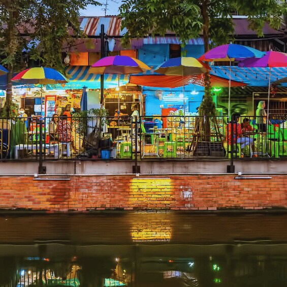 Leave the bright lights behind as you enter Talat Noi, one of Bangkok’s most atmospheric areas. Wander through narrow alleyways filled with street art, antique shophouses, and hidden Chinese shrines. Stop at the Rong Kueak Shrine and experience the quiet charm of this riverside community, where old traditions continue after dark.