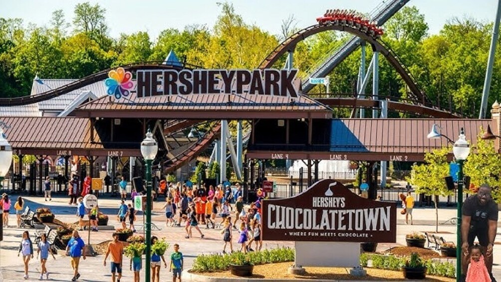 Afterwards, enjoy thrilling rides and attractions at Hershey Park, featuring over 67 rides, including roller coasters, a water park, and a zoo.