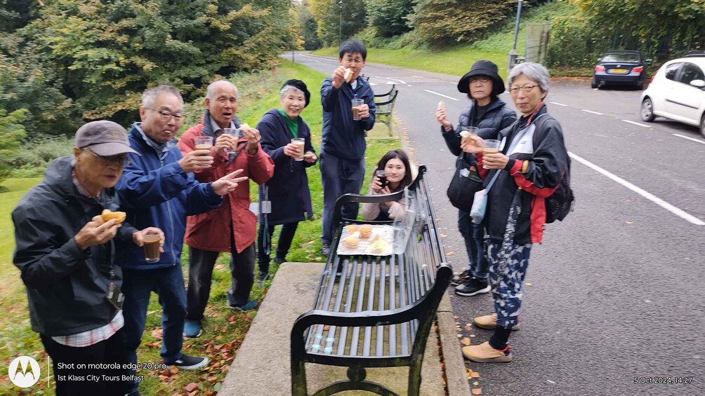 Then, take a 5-minute break and enjoy traditional Irish refreshments: a cuppa tea or coffee and a snack. This will give you a taste of local flavours and a moment to reflect on the tour's insights before continuing to Bombay Street.