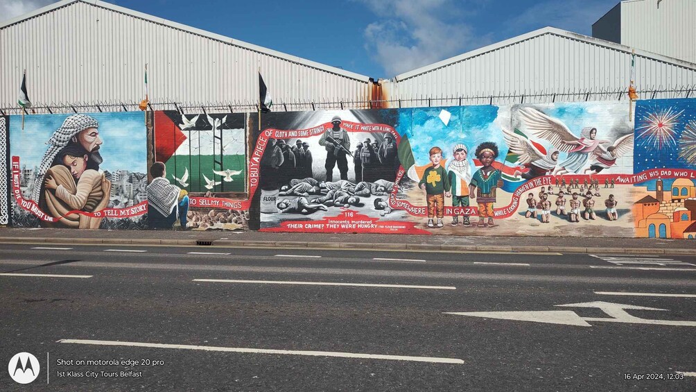 Finally, view the mural dedicated to Bobby Sands, a key figure in Northern Ireland’s history. Sands' storey is essential for understanding the region's political struggle. Make a quick stop at what is known locally as the International Peace Wall, where you will see a variety of Murals, some of which represent other conflicts around the world, some of which are seen as very similar to our past strife.