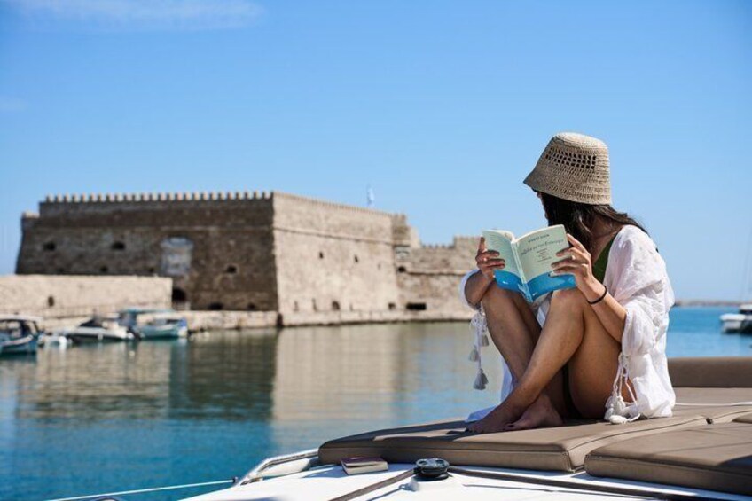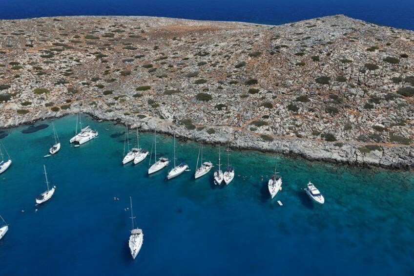 Begin your journey with a comfortable hotel pickup or directly in the charming Heraklion Old Venetian harbour, depending on the option you choose. Before you board your sailboat, soak in the sight of the ancient fortress. The trip to Dia Island takes about an hour, depending on the weather. Along the way, keep an eye out for dolphins while listening to fascinating stories about the island's legend and history. If you wish, you can participate in the sailing activities. After you arrive at Dia Island, enjoy free time to explore the crystal-clear waters. Go snorkelling, try your hand at fishing, go paddleboarding, or go for a hike on the island. If you prefer, chill out on the deck with a drink. After about an hour, enjoy a delicious Mediterranean meal. Feast on fresh Greek salads, tasty starters, and seafood pasta. Wash it all down with wine, beer, or soft drinks. After lunch, you'll have plenty of time to swim and enjoy some delicious fruit paired with a traditional drink called raki before heading back to Heraklion. If you take the afternoon tour, admire the stunning colours of the sunset as you cruise home.