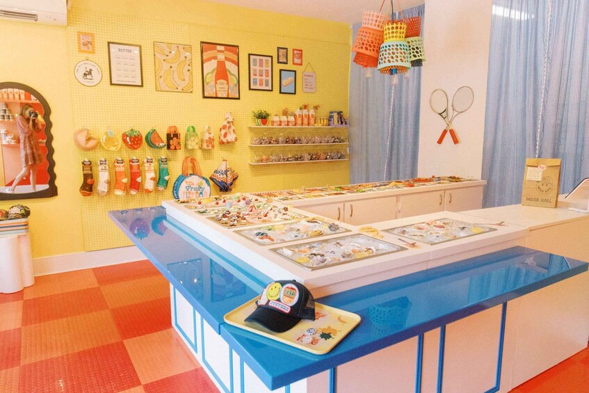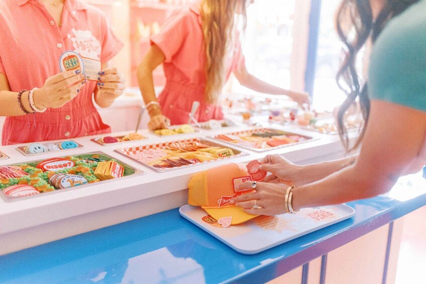 Create your own custom trucker hat at the Mess Hall Lorry Shop, a camp cafeteria-themed interactive hat buffet where you get to choose from a vast and playful selection of iron-on patches, pins, and buttons to decorate your hat or tote bag and create a one-of-a-kind souvenir.