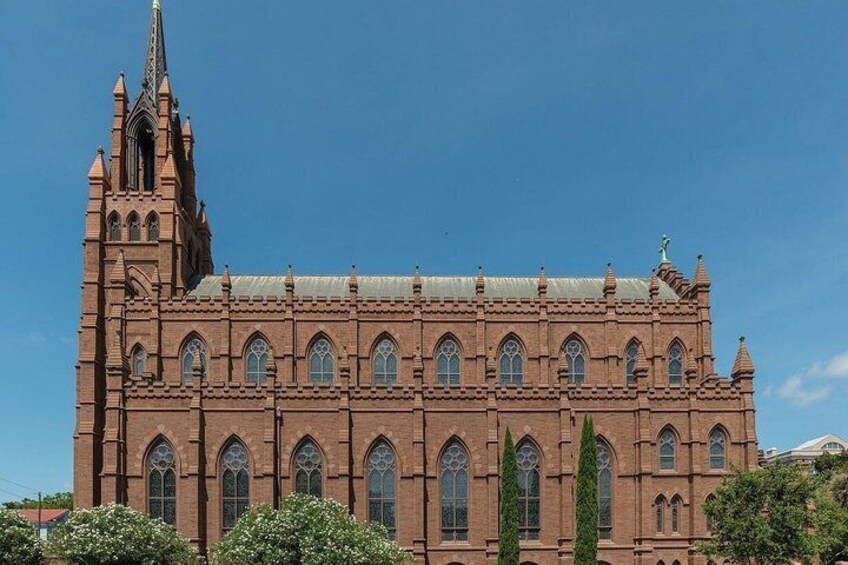 Immerse yourself in the grandeur of the South's mother church, where soaring Gothic spires pierce the Charleston sky and magnificent stained glass windows tell biblical stories in brilliant colour. Explore the cathedral's remarkable resilience through fires, storms, and reconstruction while discovering the fascinating tales of Irish and German immigrants who built this architectural masterpiece. Your audio experience shares exclusive stories about hidden symbolism in the artwork and the cathedral's role in Charleston's diverse Catholic community.