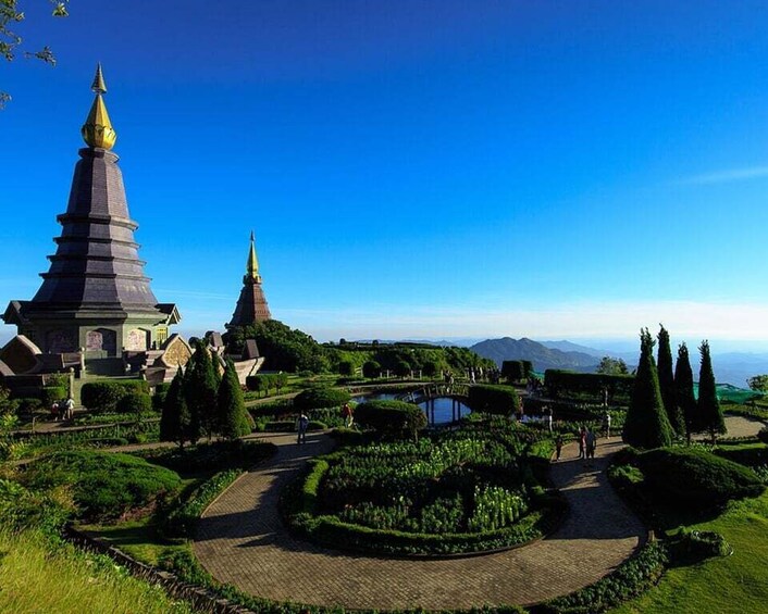 Visit the iconic Twin Pagodas built to honour the King and Queen of Thailand. Walk through colourful flower gardens and enjoy breathtaking mountain views.