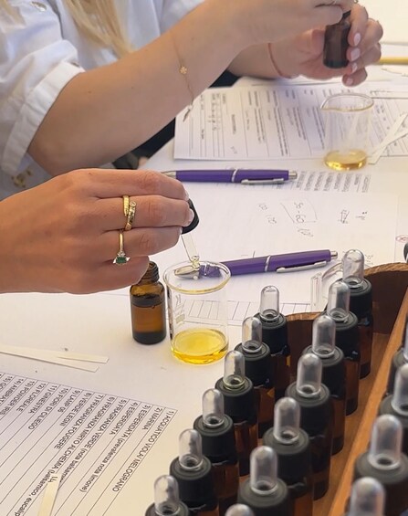 Once you have identified your favourite notes, the fun process of creating your custom fragrance begins. You will have access to a fully equipped lab, complete with vials and precise measuring tools. Our experts will teach you blending and harmonising techniques, allowing you to create a unique composition that fully expresses your personality and style.