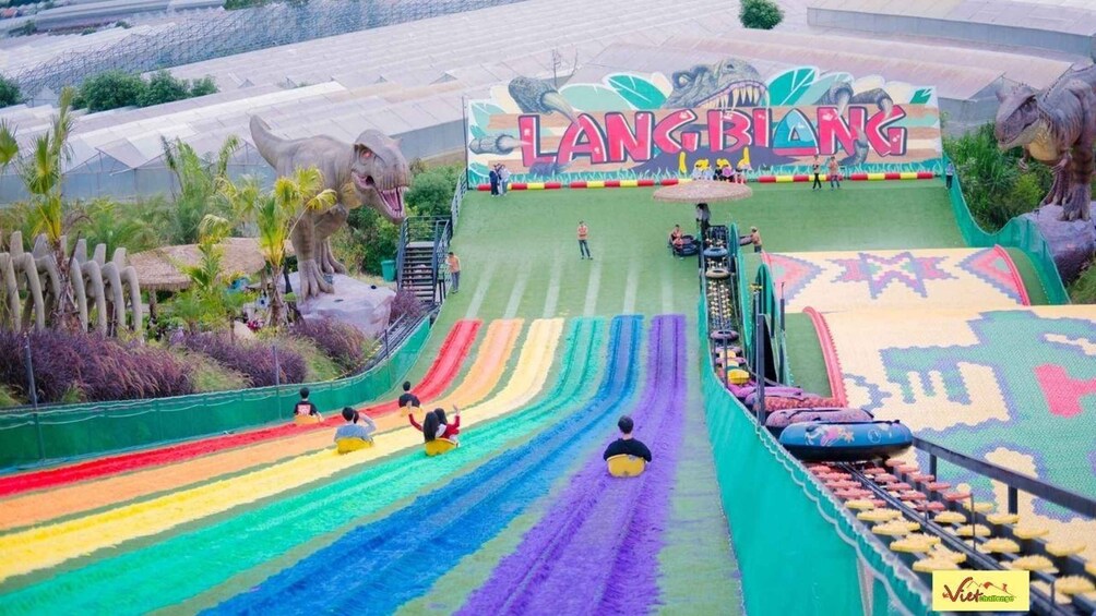 • The adventure continues at Langbiang Land, a vibrant cultural and entertainment complex. Immerse yourself in the spiritual echoes of the Central Highlands by witnessing the authentic, UNESCO-recognized ethnic Gong Show. If you're craving adrenaline, jump into a Go-Kart for a high-speed race, or glide down the highly photogenic Rainbow Slide.