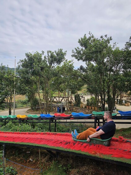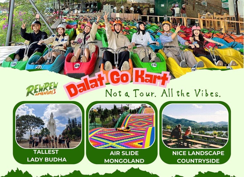 First stop: Go Kart-style ride through the countryside! Hop on your mini car and zoom through scenic backroads surrounded by pine trees and fresh mountain air. A one-of-a-kind Dalat experience!