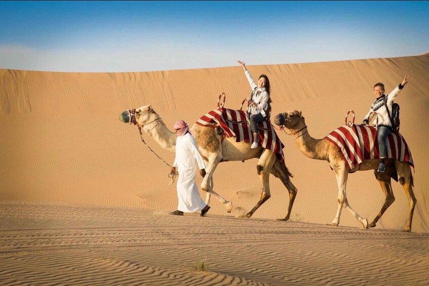 This option is included desert safari, dune bashing, sandboarding, inland sea, sharing vehicle tour (6 people max per vehicle) without camel ride. The vehicle will be shared with others. Pickup location from National Museum metro station exit 2. f