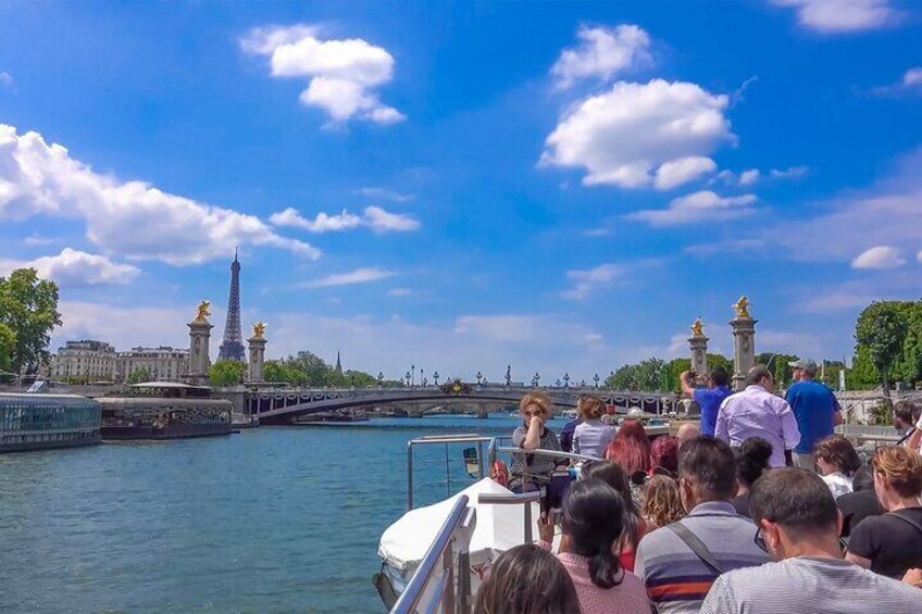 You have a guide on the cruise: This option includes a brief tour of the Eiffel Tower, lunch on the Eiffel Tower, and Seine Cruise with our tour guide.