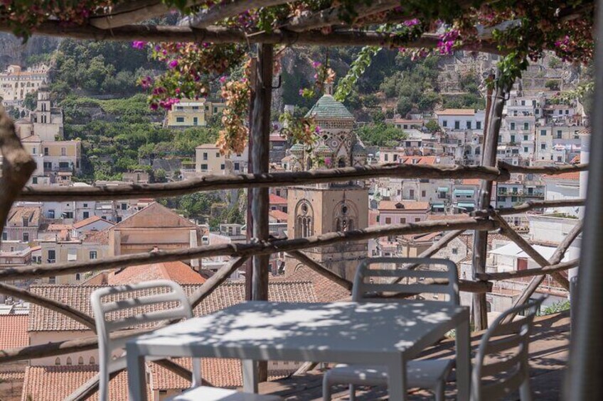 A moment of tranquility and freedom in the heart of the Amalfi Coast awaits visitors in the historic garden terrace. Here, among centuries-old lemon trees and sea views, you can walk in total autonomy, exploring ancient terraces and traditional pergolas. Take unforgettable and relaxed photographs in the shade of lemon trees, enjoying the scents of the Mediterranean. At the end of the visit, an aperitif with local products is served on the panoramic terrace, offering a moment of conviviality in a unique and quiet environment. Ideal for couples and independent travellers.