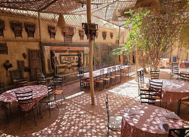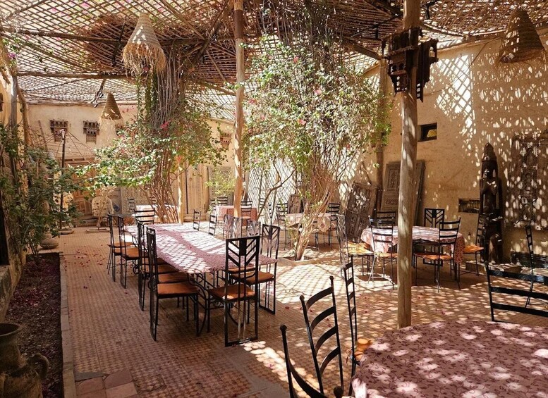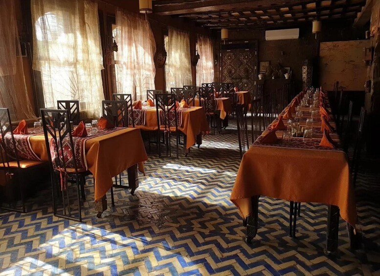 Savour a menu that includes salads, tajin, and seasonal fruit for dessert, along with Moroccan tea and traditional sweets.