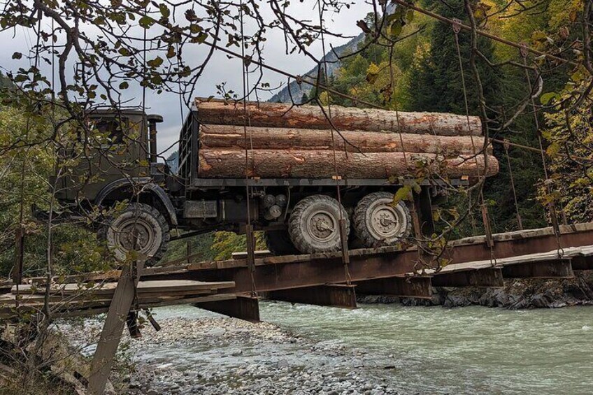 Heshkili Huts – Mountain Swing with Breathtaking Views The Heshkili Huts area offers travellers a unique experience: a swing perched high above the valley, providing panoramic views of the surrounding mountains and villages. It’s a perfect spot to relax, take memorable photos, and feel the thrill of being suspended in the heart of Svaneti’s stunning landscape. This stop combines light adventure, scenic beauty, and fun, making it a favourite for visitors seeking both serenity and a touch of excitement.