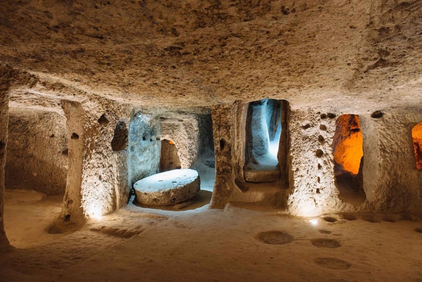Day 1 After pickup by air-conditioned bus, enjoy breakfast at a restaurant before visiting the Underground City (entry included). Visit the Uchisar Fortress, stop for panoramic views at Pigeon Valley, then arrive in Avanos for a Turkish restaurant meal.