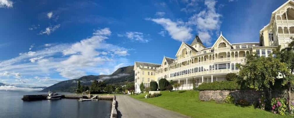Stop for the night near the Kviknes Hotel in Balestrand. Either stay on the yacht overnight, enjoying the boat completely to yourselves, or arrange to stay at Kviknes Hotel separately with the hotel.