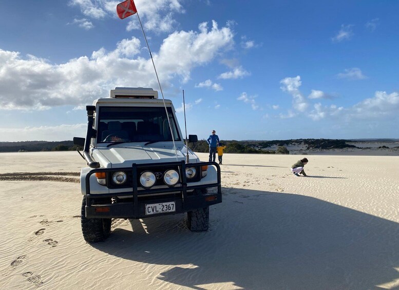 Then, travel to the coast to see wildflowers in season. On reaching the Great Southern Ocean, fly a kite or go for a stroll. Endangered hooded plover and fairy tern nest in the area, and data collected during your tour helps further understand the bird behaviour.