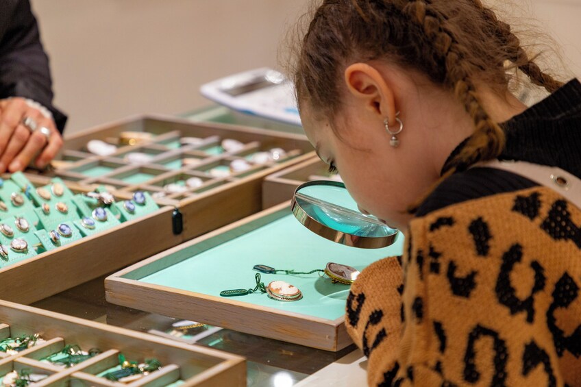 The tour includes a visit to a Cameo factory. Cameos are typical jewels from the Roman era, discovered during the excavations of Herculaneum and Pompeii in 1748. At the factory, you can observe a craftsman at work. Cameos are jewels crafted from shells and gemstones, and they are hand-carved by the artisan. Visiting the factory will allow you to use the bathrooms for free before entering the excavations. Therefore, stopping at the Cameo factory is not only informative but also essential in terms of managing the visit to the Pompeii excavations.