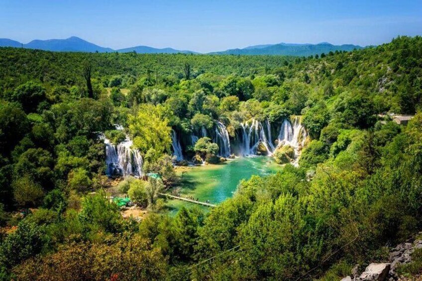 Drive north into Bosnia and Herzegovina towards Mostar with a stop at Kravica Waterfall, about 40km before the city. There's a pool at the base where you can swim if you want. Once in Mostar, walk through the Old Town to see the Ottoman architecture, visit the Mostar Old Bridge, check out the Old Bazaar, Koski Mehmed Pasha Mosque, and wander the cobblestone streets. The afternoon and evening are free.