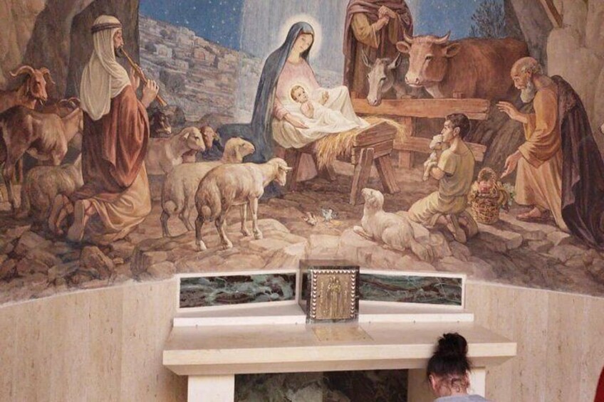 The Milk Grotto church is the place where the Holy Family found refuge during the Massacre of the Innocents, before they could flee to Egypt. The name is derived from the storey that a "drop of milk" of the Virgin Mary fell on the floor of the cave and changed its colour to white.