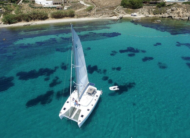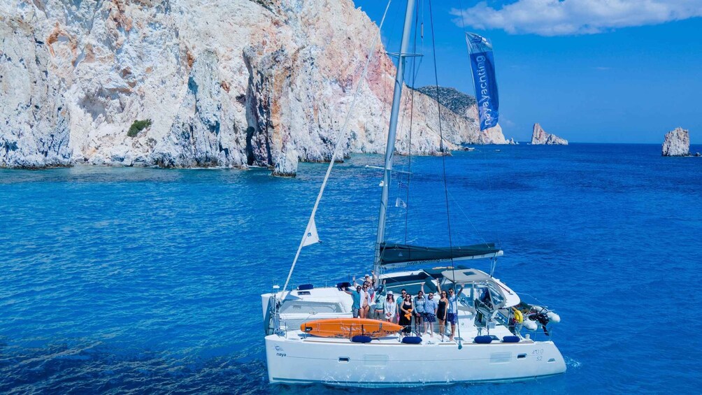 Enjoy the spectacular beauty of Milos and Poliegos (Blue Lagoon), while sailing with a luxury catamaran around the island.