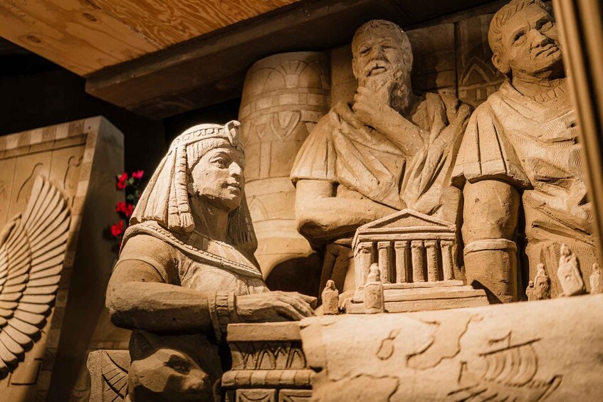 Travel back to the time of the Roman Empire as spectacular sand sculptures bring this remarkable civilisation to life. Discover scenes of powerful emperors, marching legions, bustling Roman streets, gladiators, temples, and everyday life within the empire. From impressive architecture and military strength to myths, trade, and culture, each sculpture reveals a different part of the Roman world.