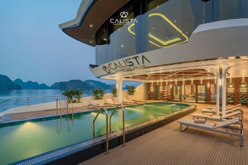 Experience Halong Bay in 2 days and 1 night aboard the ultra-luxurious 6-Star Calista Cruise, and embark on an unforgettable journey through one of the world’s most stunning natural wonders. This premium overnight cruise combines elegance, comfort, and adventure, featuring deluxe cabins with panoramic views, gourmet Vietnamese cuisine, and exciting activities such as exploring Sung Sot Cave, kayaking at Luon Cave, visiting Titop Island, and enjoying sunset parties. Whether you seek relaxation or adventure, the Calista Cruise offers a truly 6-star luxury experience in Halong Bay.