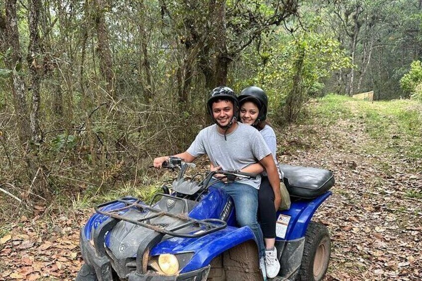 The guide will meet you at the entrance gate at 3pm. You will walk a 600 metre trail up the mountain to Uyuca Vista. If your option was a Lunch: You will be received with a delicious elegant and healthy lunch outdoors (1 meat, 2 side dishes, and refreshments). If your option is an Afternoon Tea and Campfire: You will be received with a nice afternoon tea outdoors (2 cups of tea, 3 salad bites, 2 sweet bites). In the evening the campfire will be lit serving 3 salad bites, hot chocolate and marshmellows with sticks. During, your stay you have the following options: 1. Play gelly ball (Optional payment) - Includes Gelly Ball Gun with fully filled ammo and glasses. 2. quad bike Tour Experience aprox. 20 minutes (Optional Payment) 3. Use the game room to watch films, play arcade atari games, mini football table game or play ping pong. 4. If you just want to relax in the hammocks or sit around in the house, you are welcome to do so. 5. Take pictures of the beautiful birds and forrest near the house. At the end ofyour visit, the guide will lead you down the mountain back to the entrance gate. (The guide will have a lantern but you are welcome to bring your own handlight).
