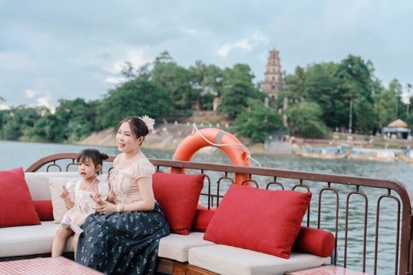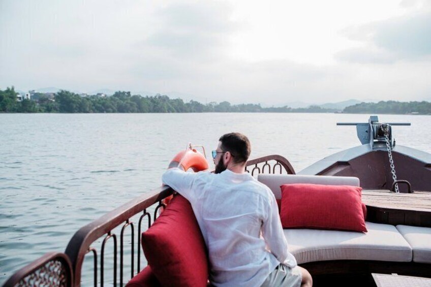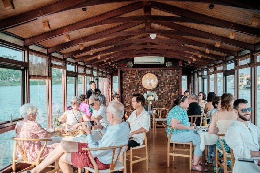 Enjoy Tea on Dragon Boat along Huong River