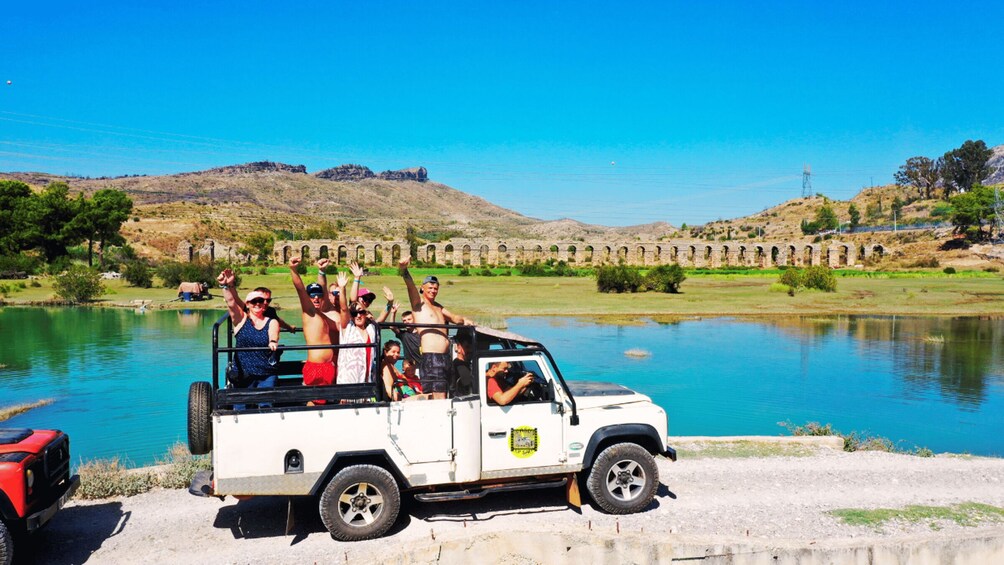 First, you'll head into the Taurus mountains and go off-road. You'll make stops to admire beautiful views of a lake, where you can take photos together. Afterwards, you'll continue your off-road journey until you reach the Roman Aqueducts. There, you can take a short break to rest and snap some pictures.