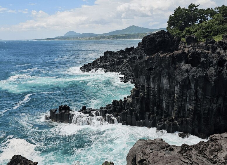 • Gaze at natural volcanic rock formations created by lava at Jusangjeolli Cliff