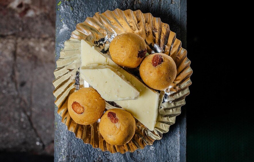 For those with a sweet tooth, try silky burfi milk fudge and laddu chickpeas desserts. Wash it down with a lassi that's dusted with nuts and saffron.