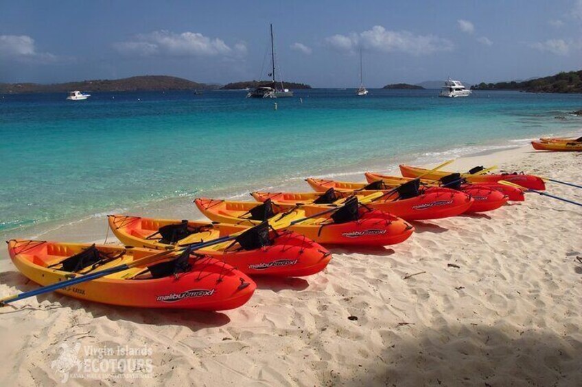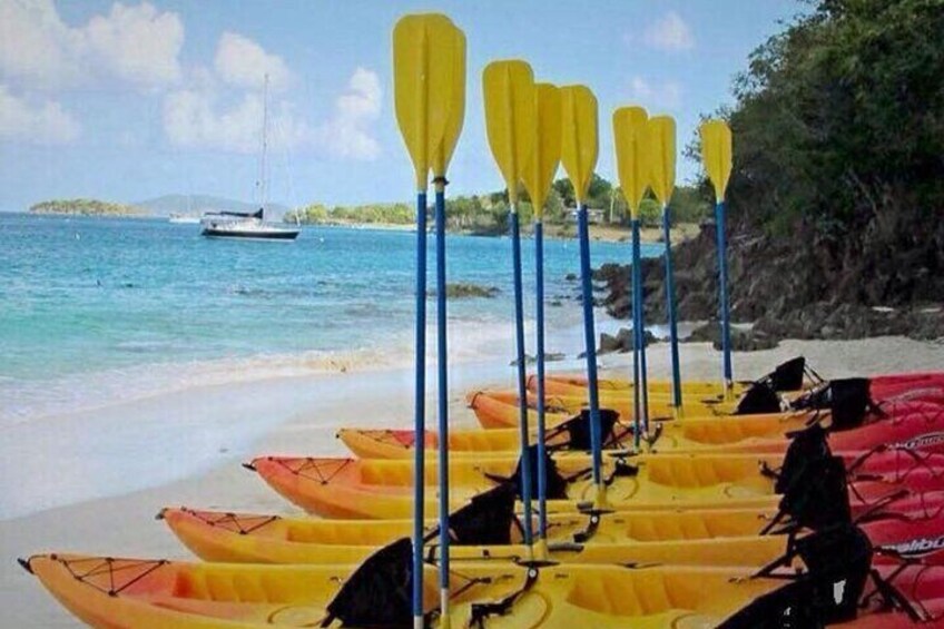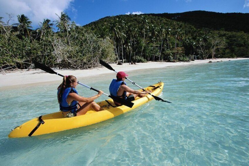 Renting a kayak is the best way to get to know the waters and beaches of Saint John, one of the Virgin Islands in the Caribbean Sea. Choose a single or double-tandem kayak for two, then hop in for a paddle to explore and play at any pace desired.  Sit-on-top kayaks are perfect for beginners who have never kayaked before, but also for the experienced adventurer who wants to go off the beaten track to discover more remote areas, secluded cays, and picturesque beaches. With a personal kayak, there is the freedom to explore another, more watery side of Saint John. All the necessary equipment, including a life jacket and kayak gear, is included.