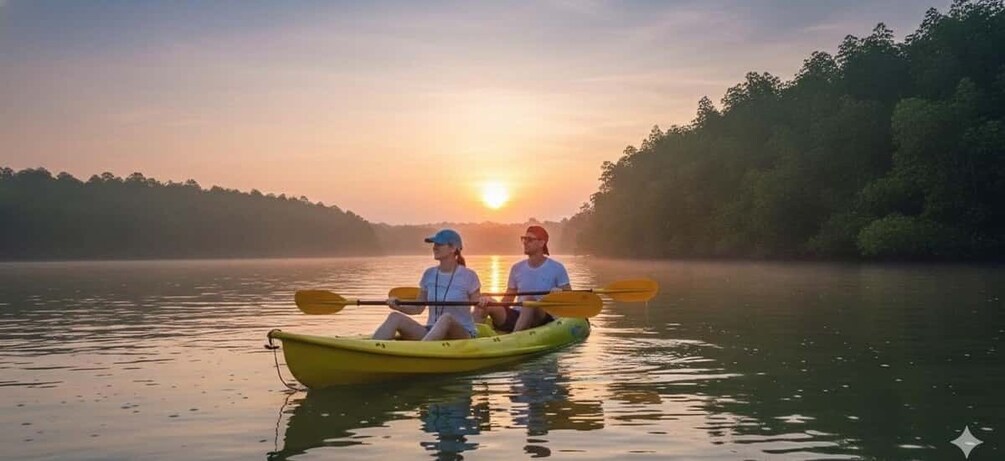 Paddle through narrow mangrove waterways as the first light appears on the horizon. Golden reflections shimmer across the water, while the mangrove roots create natural tunnels and patterns around you. With few people awake at this hour, the surroundings feel intimate and untouched broken only by birds calling, water rippling beneath your paddle, and the quiet rhythm of the morning.