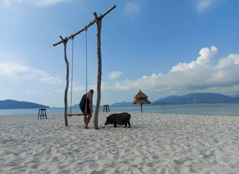 Aboard a speedboat, you'll explore a peaceful island, famous for its white sandy beaches and relaxed atmosphere.