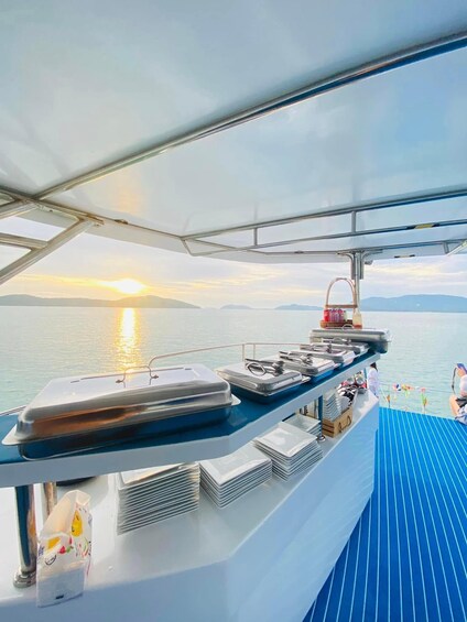 Midway through your journey, savour a freshly prepared light meal featuring authentic Halal-certified Thai specialities and seasonal tropical fruits—all served with panoramic ocean views from the comfort of our catamaran.