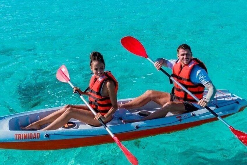 Discover the best of Cozumel with this all-in-one package at KUZÁ Beach & Adventure Park, an experience designed to help you relax and enjoy yourself to the fullest on one of the island’s most crystal-clear beaches, featuring over 1 km of soft sand and first-class service. Explore four unique ecosystems—beach, mangrove, reef, and jungle—connect with Mexican culture in the Maya Zone, and experience a day full of adventure, nature, and cuisine. Enjoy water activities like kayaking and paddleboarding, bike tours, nature trails, a buffet featuring national and international cuisine, an open bar with domestic drinks, and entertainment for all ages. The perfect getaway in Cozumel for families, couples, and travellers seeking fun, relaxation, and an unforgettable experience all in one place.