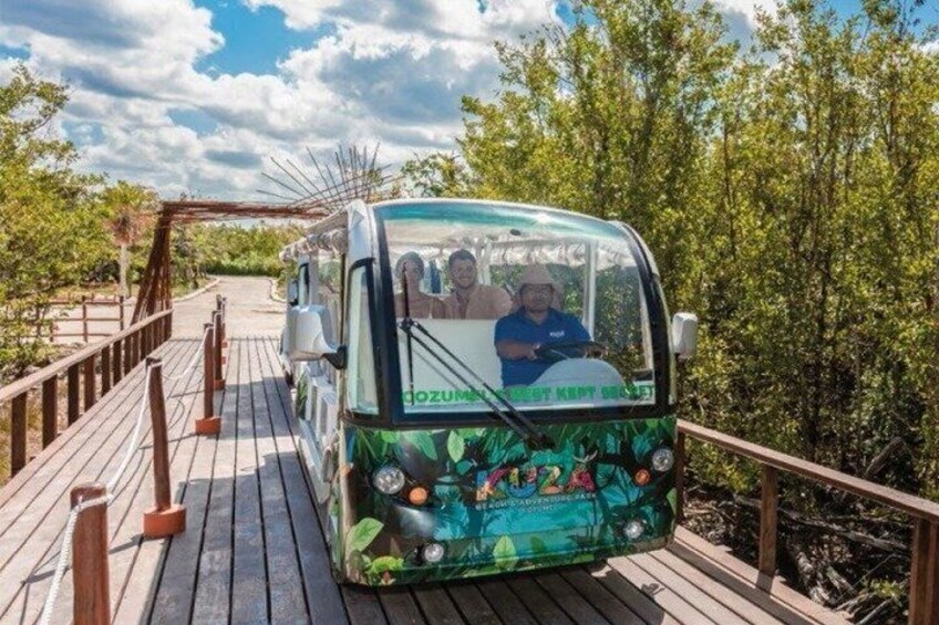 Transport via electric tram within the park