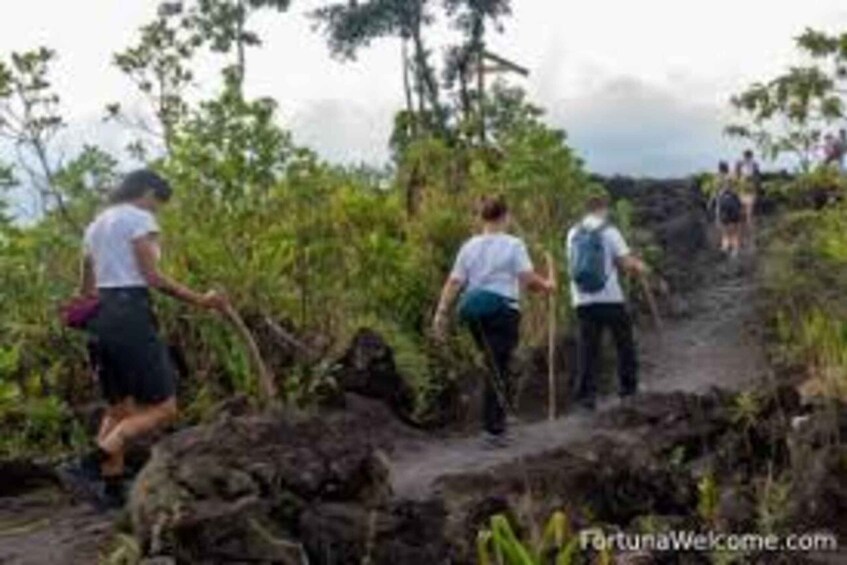The adventure kicks off with a guided hike along a carefully selected nature trail, which leads us to the base of the majestic Arenal Volcano. Along the way, you'll walk through lush tropical vegetation, ancient lava flows, and landscapes that tell the area's geological history. Every step offers breathtaking views of the volcano and the surrounding forest, creating a constant feeling of wonder and connection with nature.
