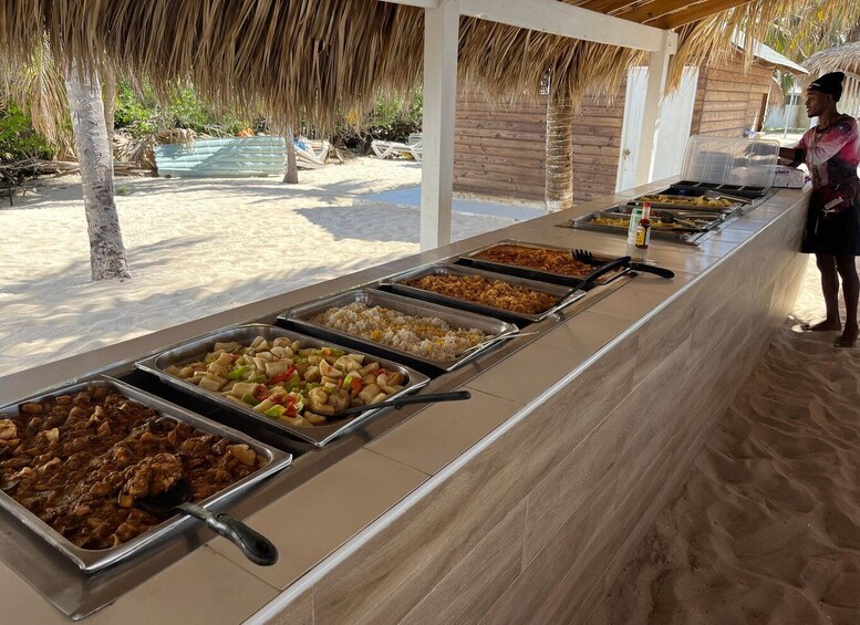 A delicious Dominican-style lunch will be served right on the beach, featuring grilled meats, rice, fresh salads, tropical fruits, and drinks to complement this moment of relaxation.