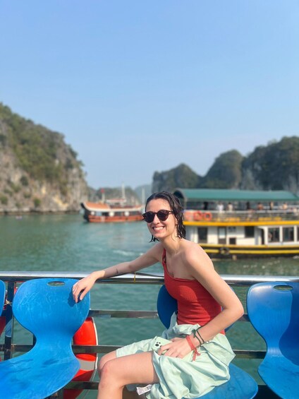 Vietnamese cuisine, seafood and vegetarian food on boat. Indulge in free time for relaxation, swimming, boat-jumping, sunbathing on deck, and socialising.