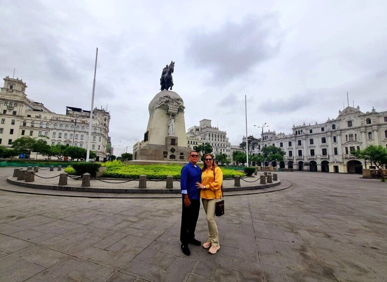 We will start by picking you up from where you are staying and then we will head to the historic centre of Lima. We will visit our extraordinary Plaza San Martin! which is surrounded by beautiful buildings such as the Gran Hotel Bolivar, the incredible twin buildings, the Colon Theatre, etc.