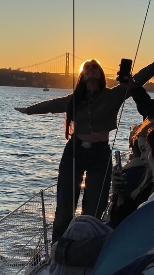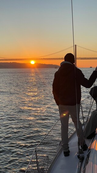 We will start our tour at the Alcântara dock, where we will give a brief briefing on the safety conditions and the tour to be carried out, to have a fantastic experience. At the beginning of the tour, we will hoist the sails of our sailboat, we will follow along the bank to the arrival port of Lisbon, Terreiro do Paço. Then we start to go down the river, where we will be able to observe the various monuments of the city along the bank. Are they: Museum of Art, Architecture and Technology, Museum of Electricity, Monument to the Discoveries and the majestic Tower of Belém. While we travel, you will enjoy a refreshing drink, Contemplating the magnificent view of our river, and its unique light. Back at our marina, we will sail towards the south bank of the Tagus River, where you will be able to see the wonderful statue of Christ the King, with his arms open, always ready to embrace Lisbon and its visitors.