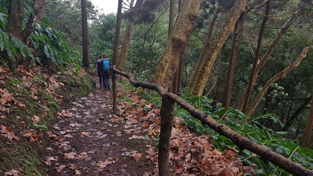 As you continue along the trail, you will see the old Moinho do Félix, whose purpose was to produce flour from corn or wheat. Descend towards the stream and come across the Palma da Mão viewpoint, where you will see the second waterfall, Cascata do Teófilo. Continue through a cryptomeria forest, which will lead you to the Cascata da Gruta and its natural pool, the Poço da Truta.