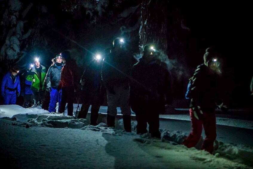 With the sound of crunching snow under your feet and your headlamps illuminating your path of glistening snow, a mysterious world of changing shapes is created. The tours are fully guided and there are a variety of trails to suit all ages and abilities. No experience is required and all the gear you need is provided for a safe and comfortable trip.