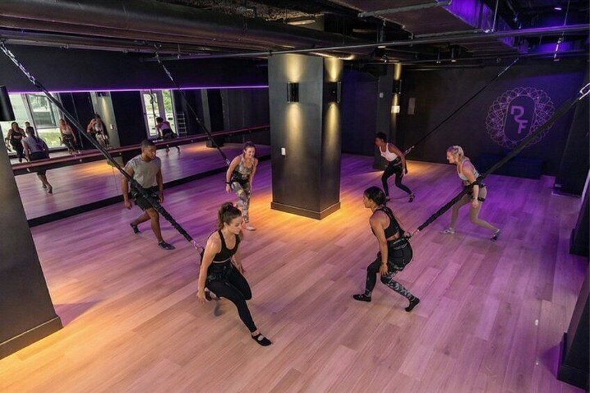 During our high-energy Bungee Fitness Class at RF Studios Miami, you’ll experience one of the most exciting and unique workouts in Miami Beach! Travellers will strap into a professional bungee harness and get ready to bounce, fly, and defy gravity as they move through a dynamic workout that blends cardio, strength training, and aerial fun. Guided by expert instructors, you’ll squat, jump, lunge, and even soar across the studio floor while the bungee cord supports your body weight—making the workout both low-impact and high-intensity. Expect to laugh, sweat, and feel like you’re flying! This one-of-a-kind Miami activity is perfect for all fitness levels and guarantees an unforgettable adventure you won’t find anywhere else. Whether you’re visiting Miami Beach for the first time or looking for a unique group activity, our Bungee Class combines fitness, fun, and a little adrenaline rush to make your trip unforgettable.
