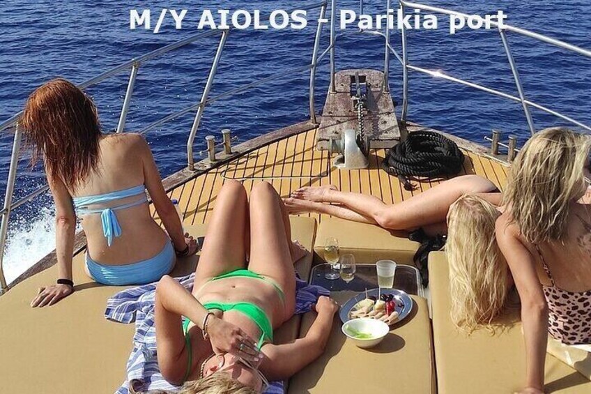MOTOR Yacht departs daily at 9.30 from the marina of Paroikia and returns at 16.45