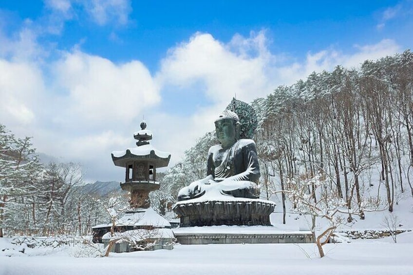 Nami Island is famous for its romantic atmosphere, where the drama “Winter Sonata” was filmed. Enjoy walking paths lined with metasequoia, ginkgo trees, and cherry trees, as well as art installations at every corner.