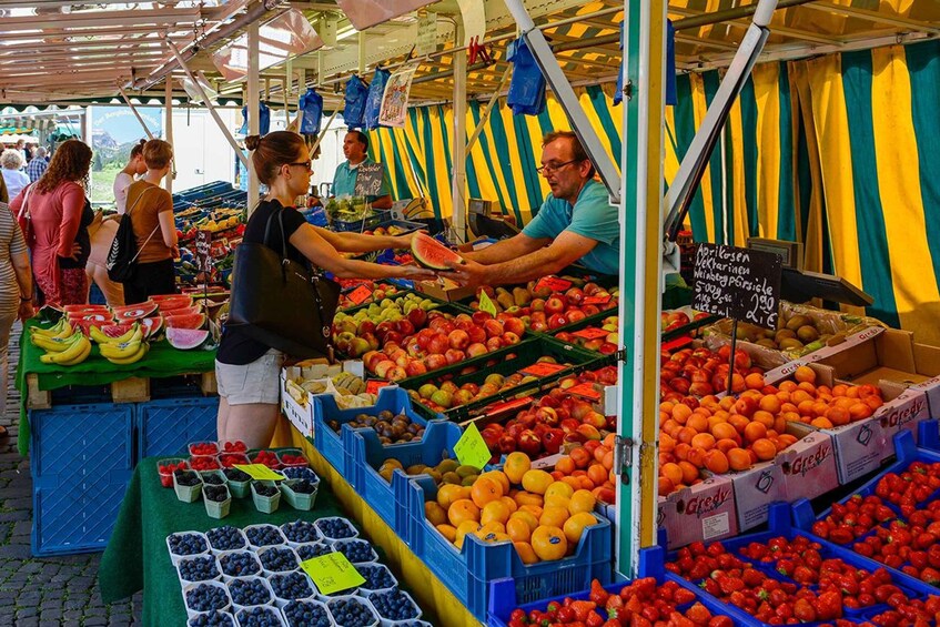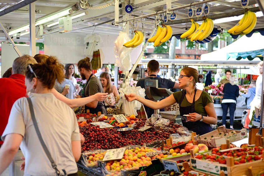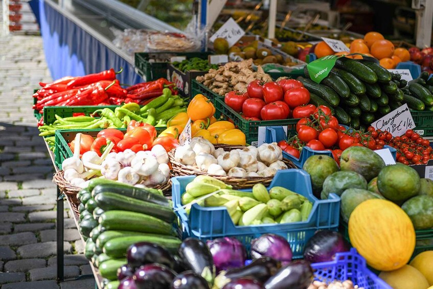 With our weekly market tour in Münster, you'll experience a tour that appeals to all the senses. Try culinary specialities at four market stalls while your guide tells you more about the market vendors and their products. Hear how and where the market used to take place, stroll past spices, baked goods, and liquorice that exude a tempting scent, and enjoy the bright colours of the fruit, vegetable, and flower stalls.