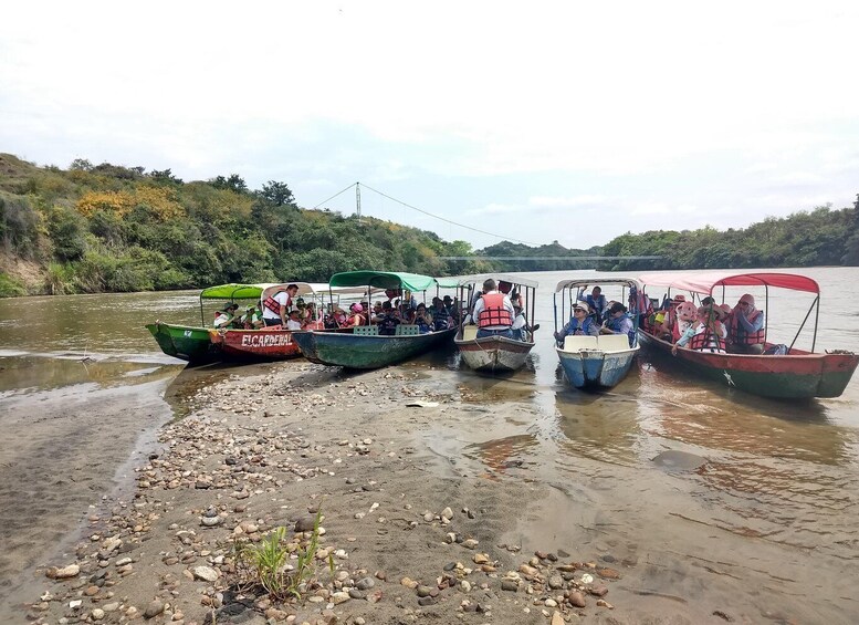 After picking you up at the hotel in the city of Neiva, we will begin the tour to the monument La Gaitana, a faithful representation of the history, the idiosyncrasy of the huilense and of course its biotic DNA, the Magdalena River, then walk to the pier, site chosen by the canoeists after the construction of the Monument to La Gaitana, because they say that the water levels facilitate the nautical operation, in this space are the boats that provide their services of river transport of passengers in the modality of tourism, there our crew member will give the pertinent recommendations and will deliver the life jacket of obligatory use to be able to board the boat, the nautical route that will be made is “Route of the achira” a walk of 16 km (approximately) by the majestic Magdalena River, river that is born in the Colombian Massif to an altitude of 3.400 metres above sea level, from there it has travelled 190 kilometres to reach the illustrious city of Neiva.