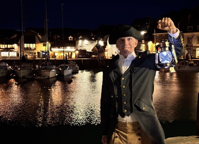 PEOPLE PEOPLE - S Quay, Padstow PL28 8BL, UK | Meet on the corner of the harbour outside the Old Custom House at least 5 minutes before the tour begins. Your guide will appear carrying a lantern, wearing a tricorn hat, and clothing popular 200 years ago. We will leave precisely on time. Latecomers may find us outside the Harbour Inn, 30 paces away.